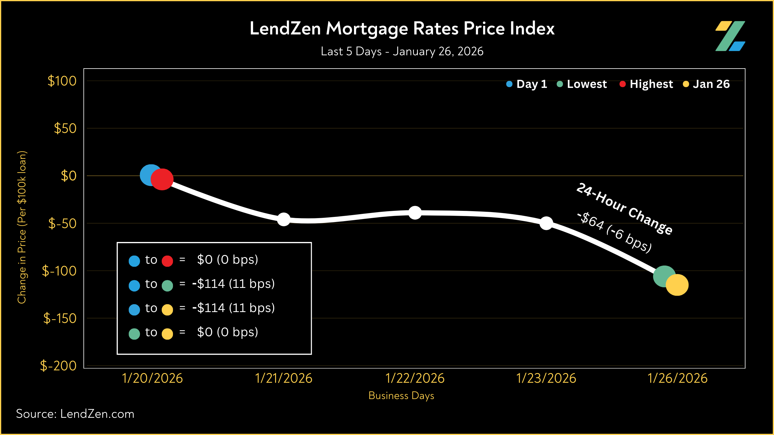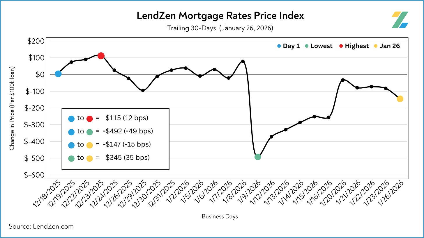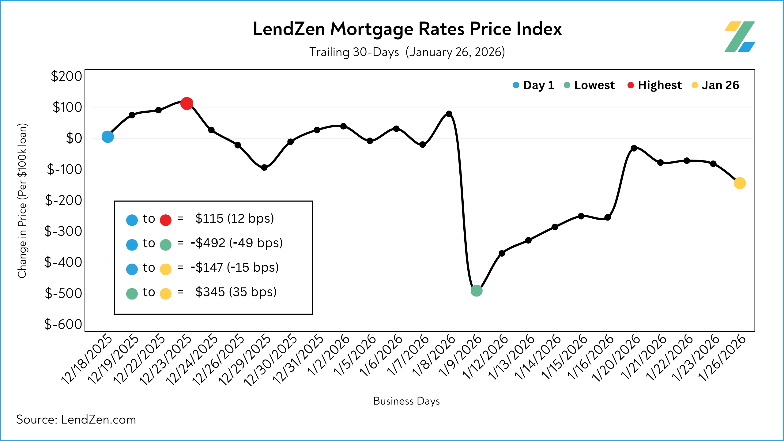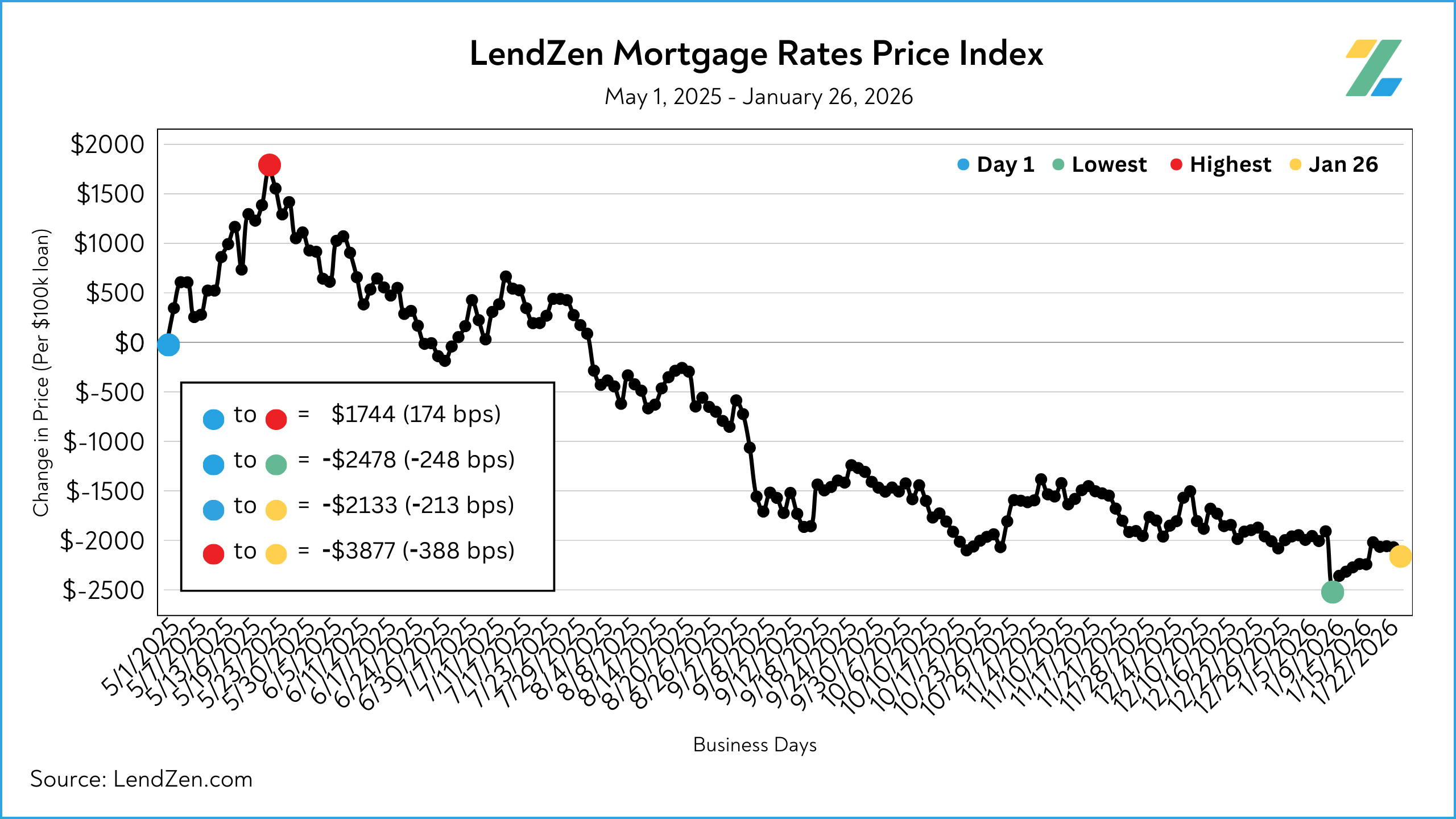 The LendZen Index tracks the price of mortgage rates across a spectrum of mortgage-backed securities.