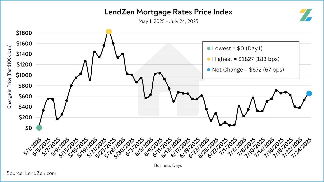 After starting the index on May 1, 2025, mortgage rates are now 67 bps more expensive.