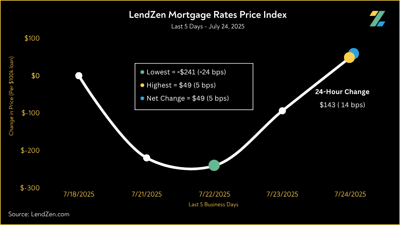 Since July 11, the price of mortgage rates increased 17 basis points, as seen in the 10-Day chart below.