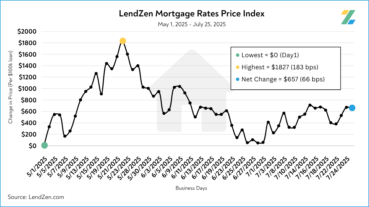 After starting the index on May 1, 2025, mortgage rates are now 66 bps more expensive.