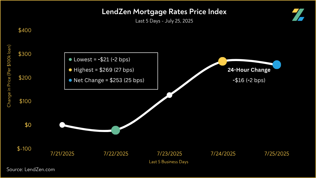 The LendZen Index tracks the price of mortgage rates across a spectrum of mortgage-backed securities.