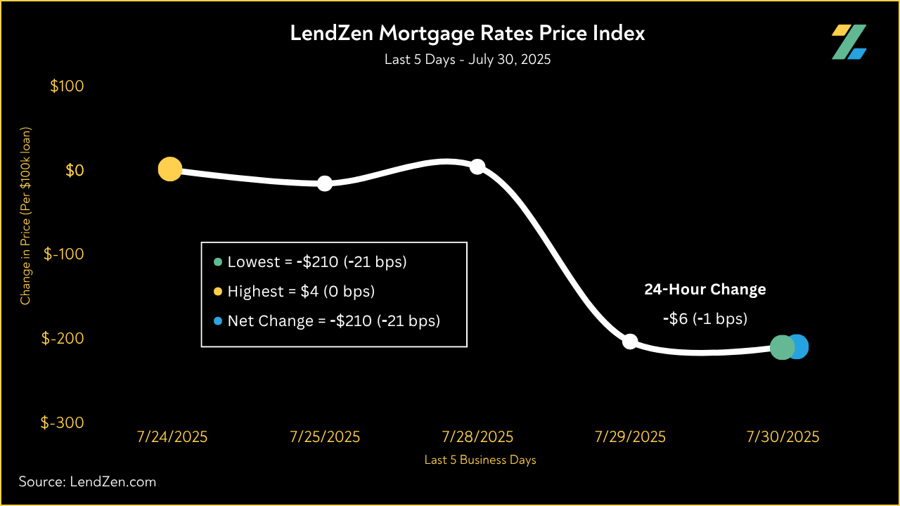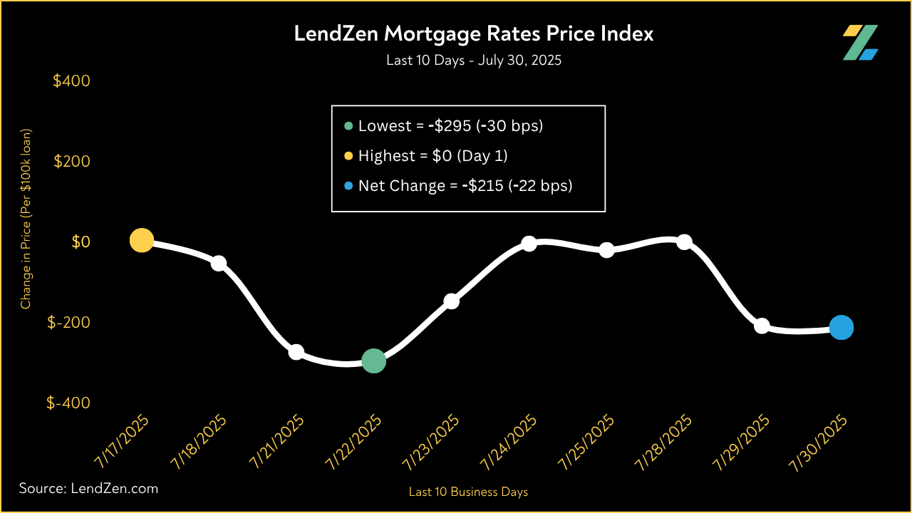 Since July 17, the price of mortgage rates decreased 22 basis points, as seen in the 10-Day chart below.