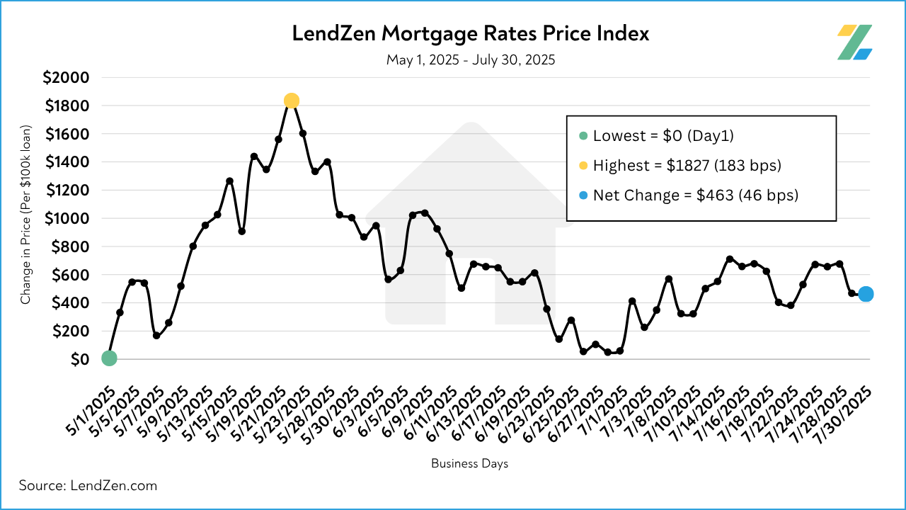 The LendZen Index tracks the price of mortgage rates across a spectrum of mortgage-backed securities.