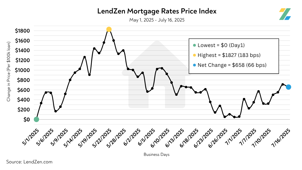After starting the index on May 1, 2025, mortgage rates are now 66 bps more expensive.