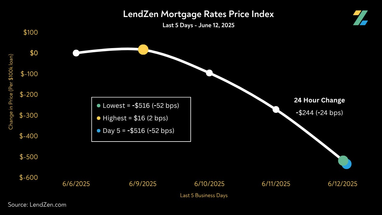 The LendZen Index tracks the price of rates across a spectrum of MBS.