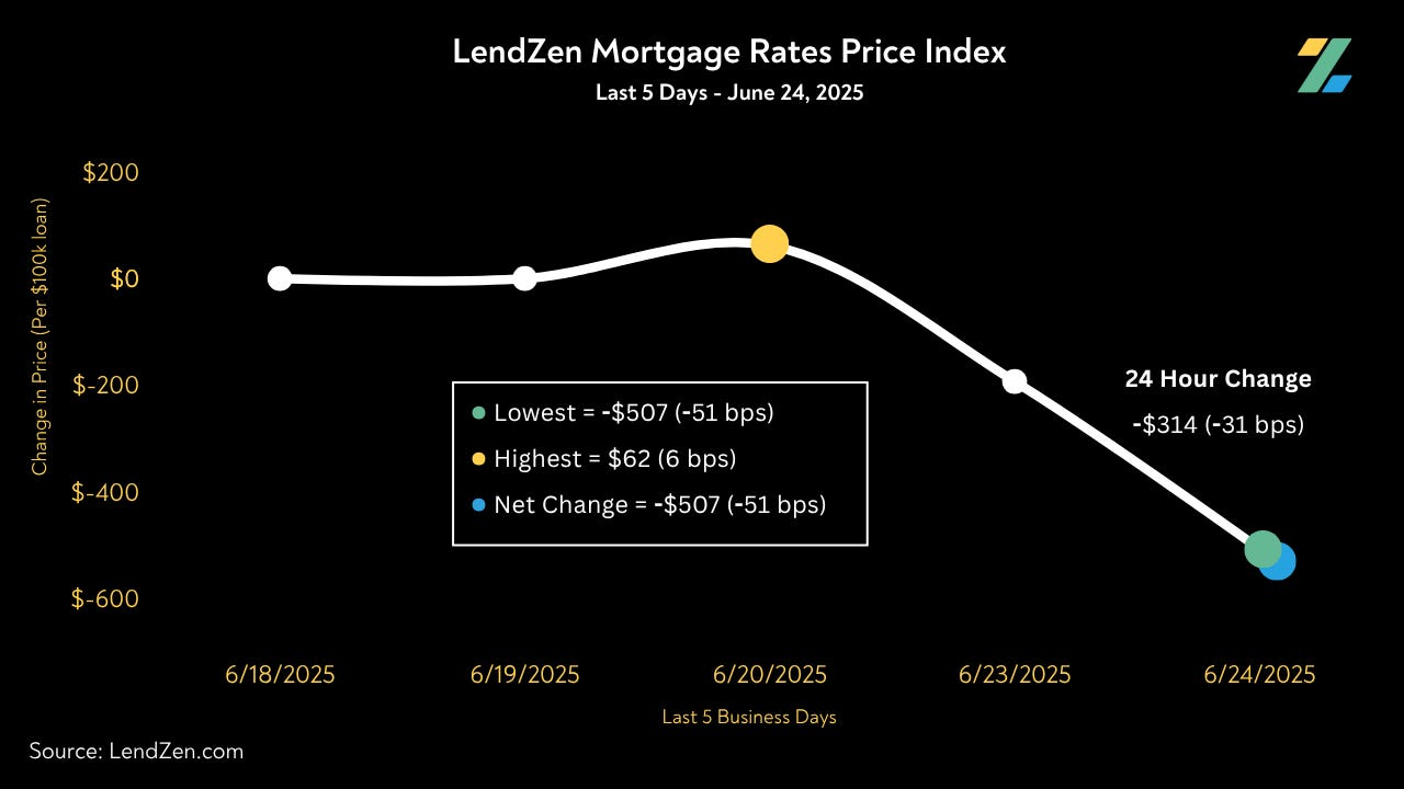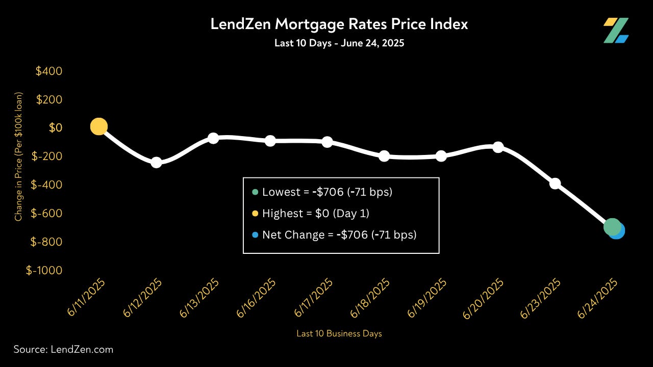 In the last 10-Days the price of mortgage rates dropped by an average of 71 basis points.