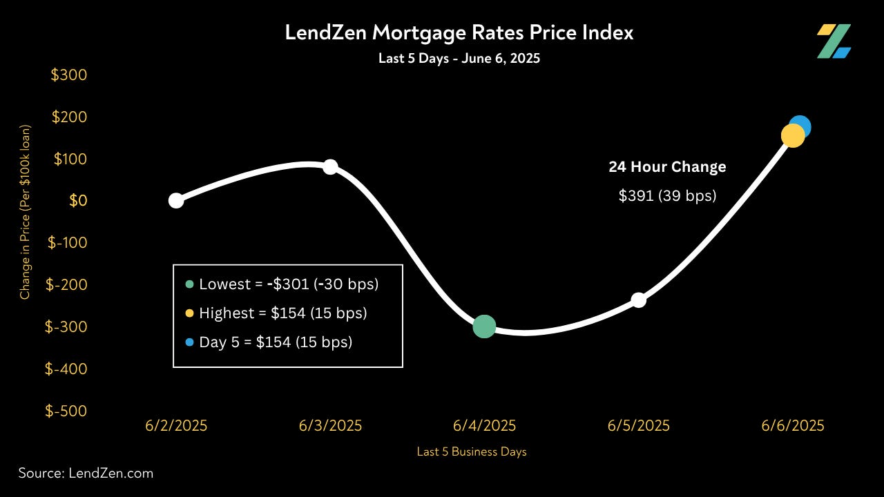 Friday's bond market reaction to the Non-Farm Payroll employment report pushed the cost of mortgage rates higher 39 basis-points, or $391 per $100k.