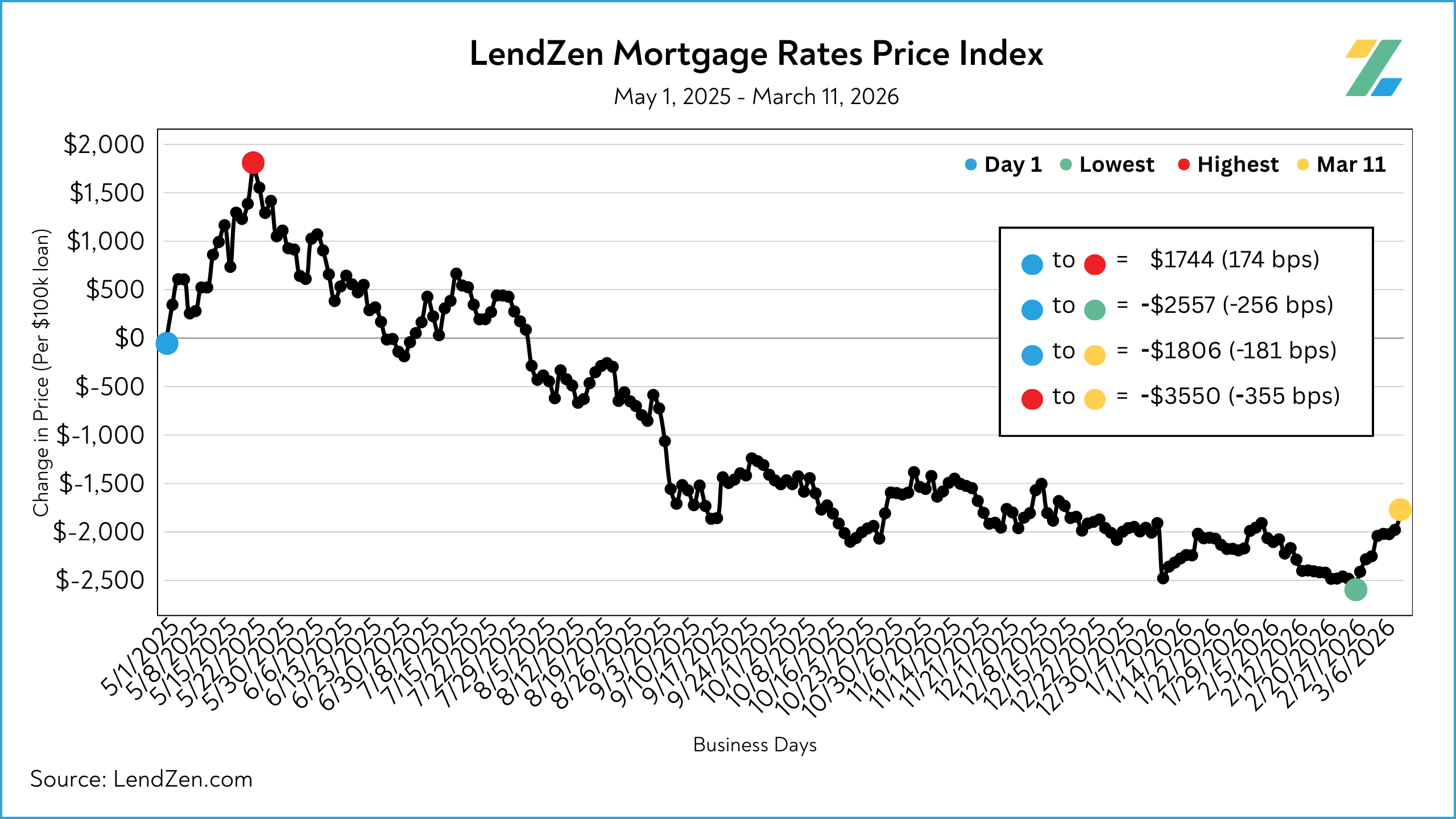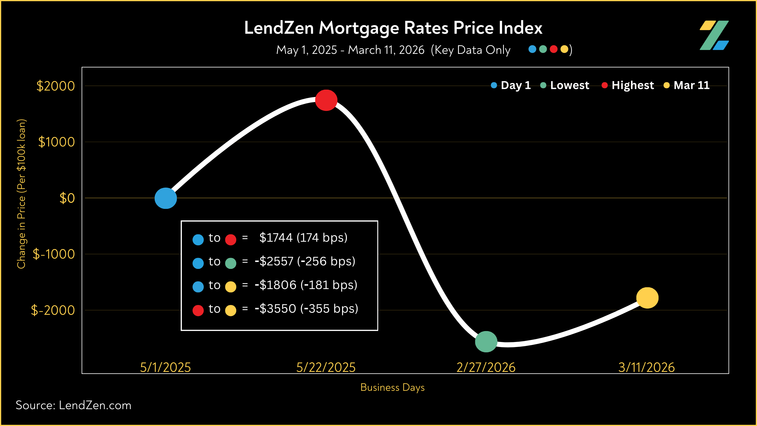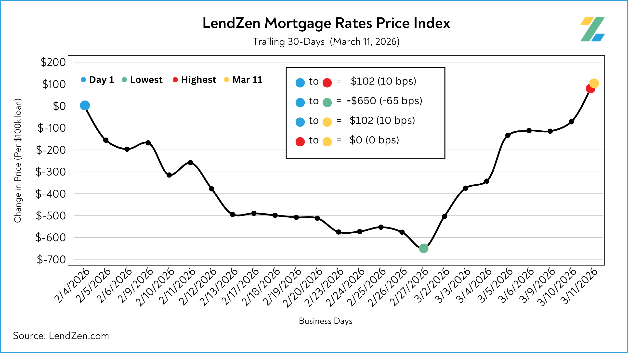 The LendZen Index tracks the price of mortgage rates across a spectrum of mortgage-backed securities.