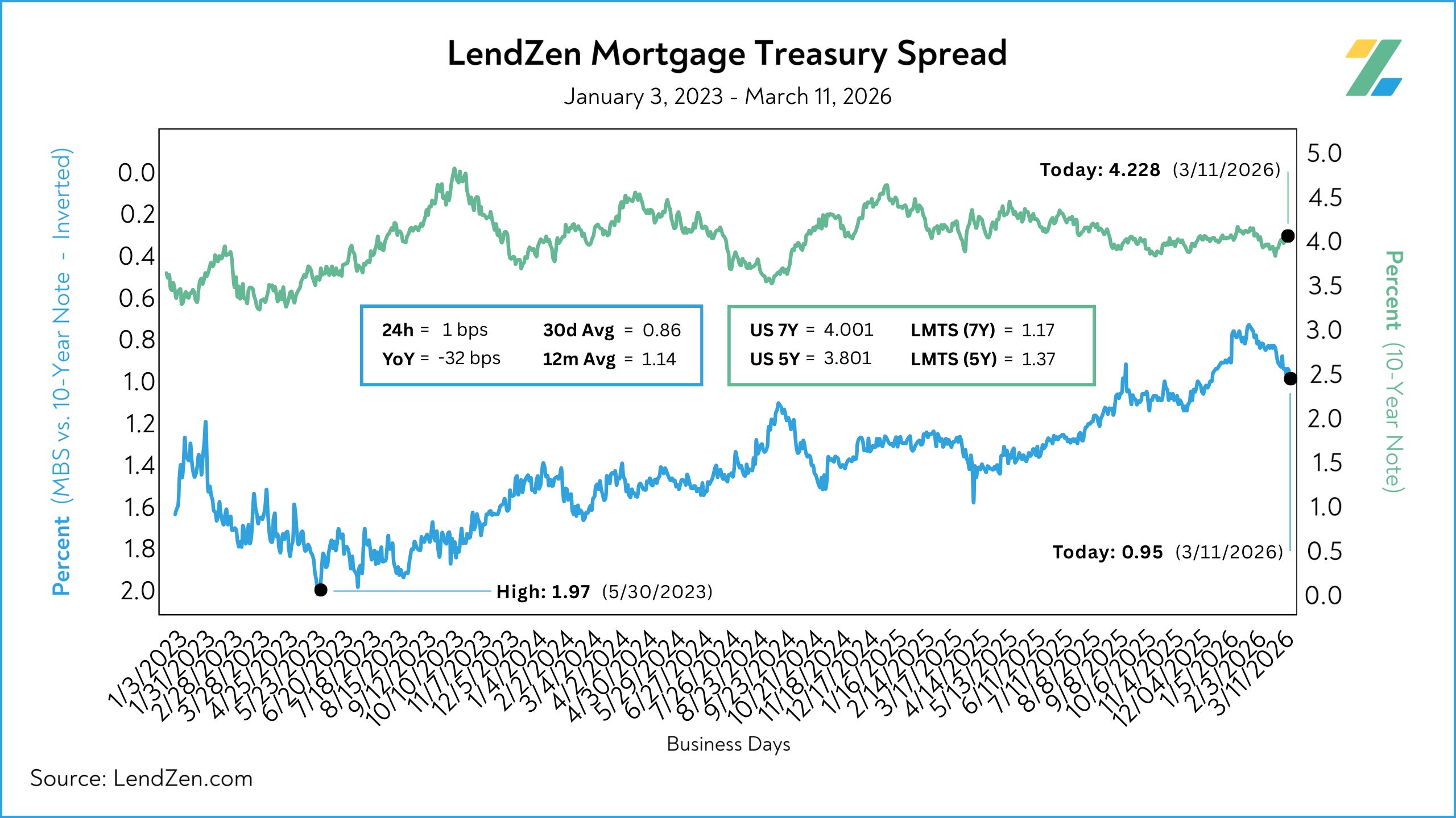 The LendZen Mortgage Treasury Spread (LMTS) uses actual bond yields to create a historically consistent, and reliable, data set.