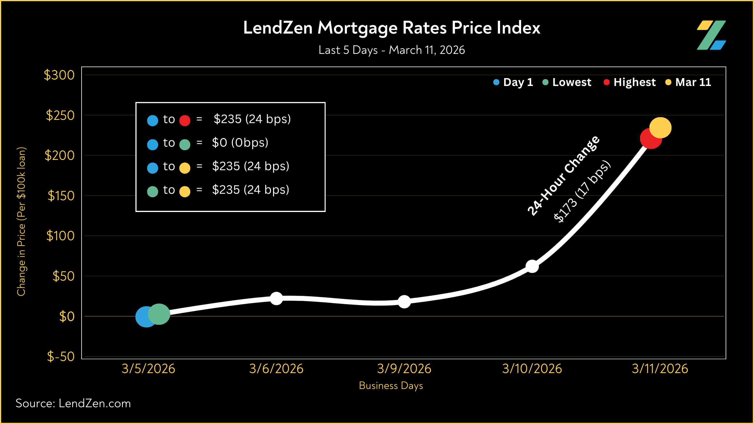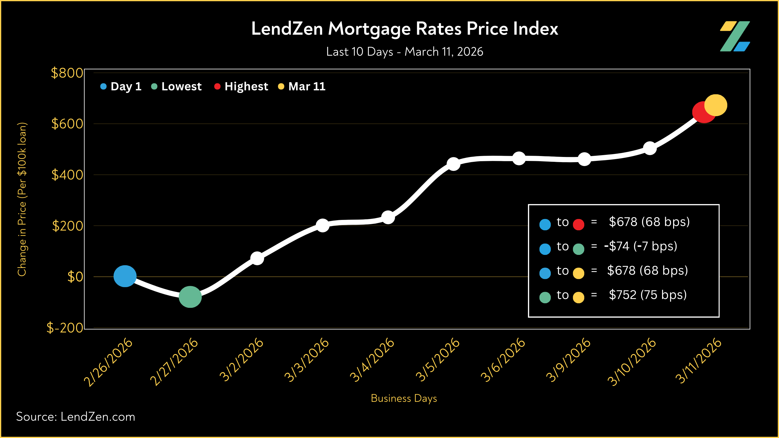 Since February 26, the price of mortgage rates increased 68 basis points, as seen in the 10-Day chart below.