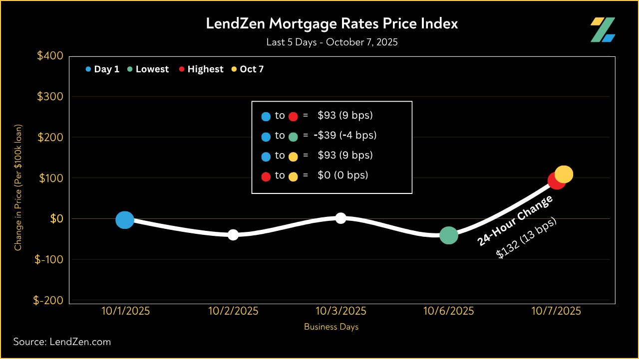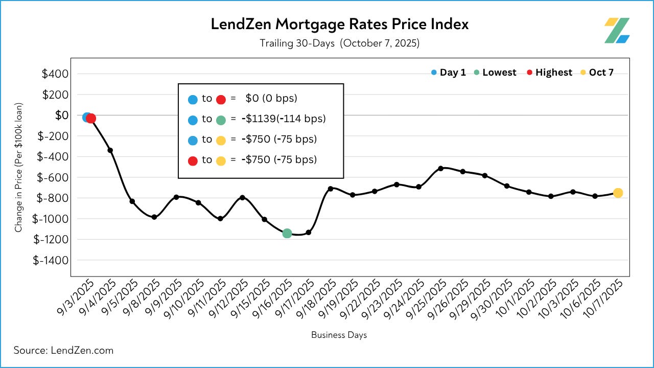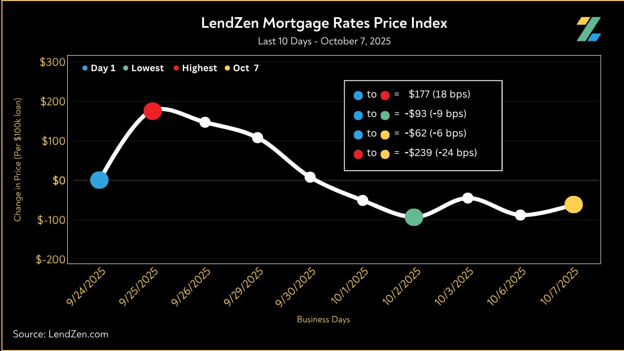 Since September 24, the price of mortgage rates decreased 6 basis points, as seen in the 10-Day chart below.