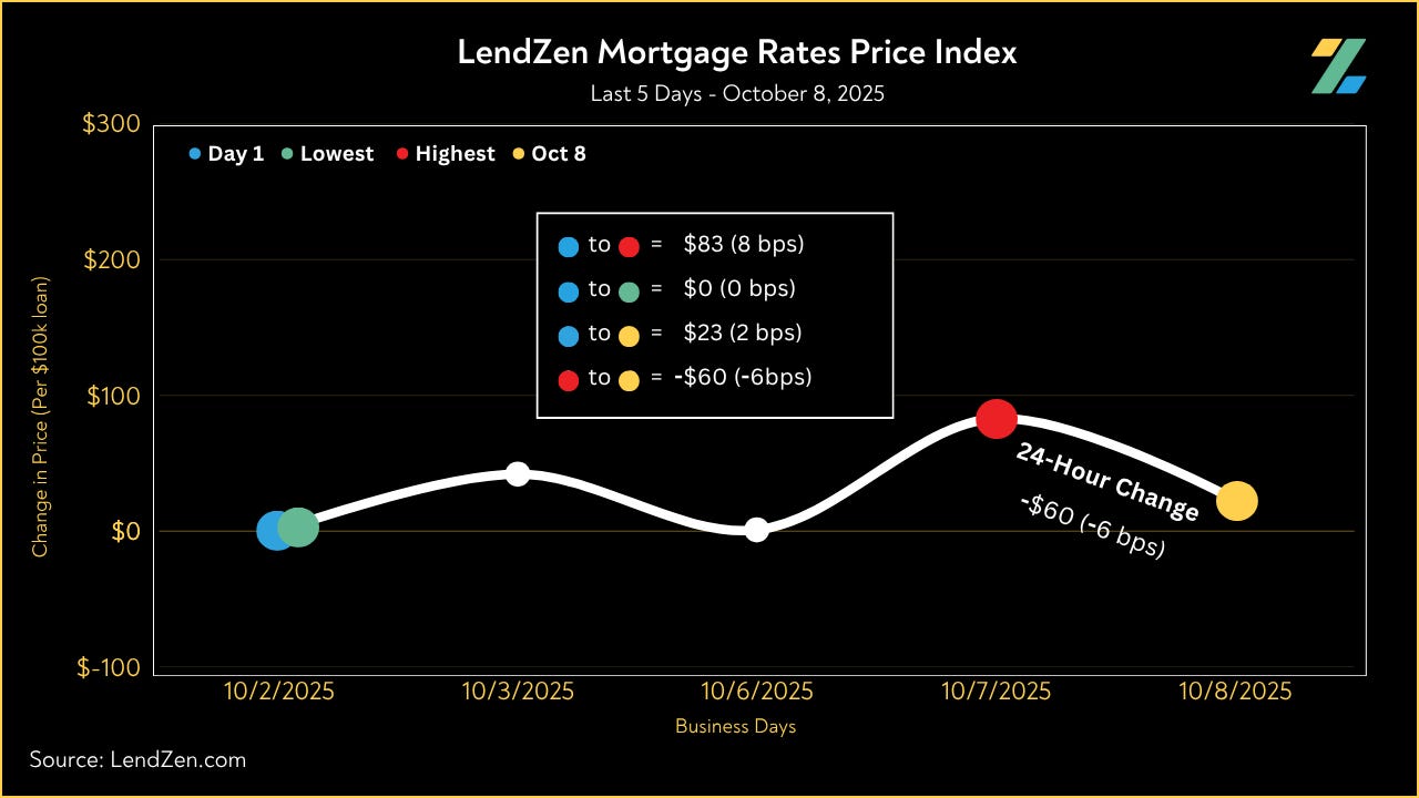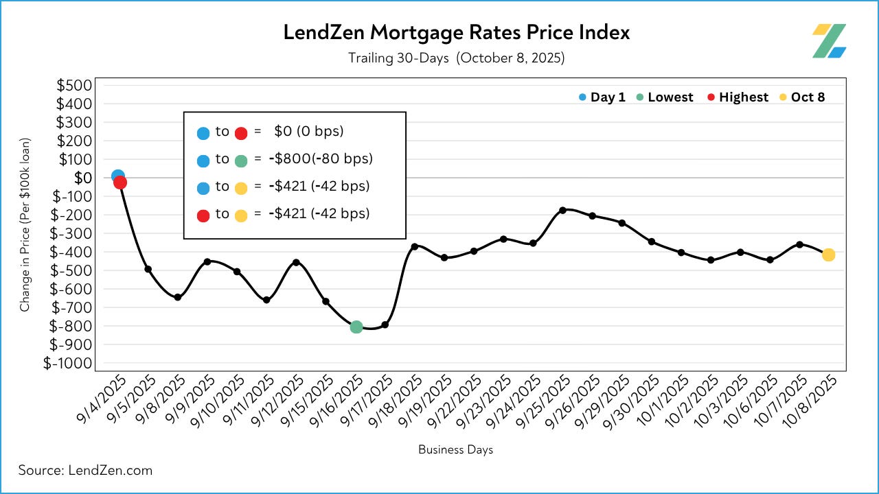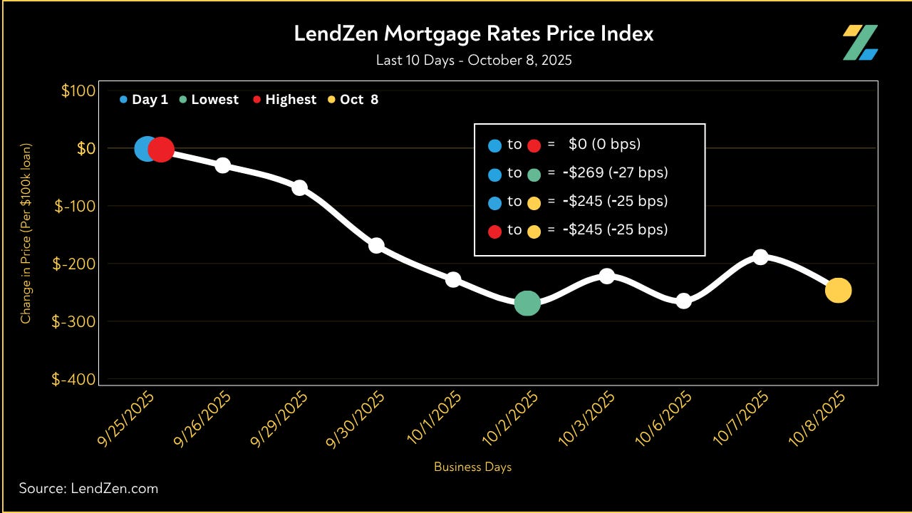 Since September 25, the price of mortgage rates decreased 25 basis points, as seen in the 10-Day chart below.