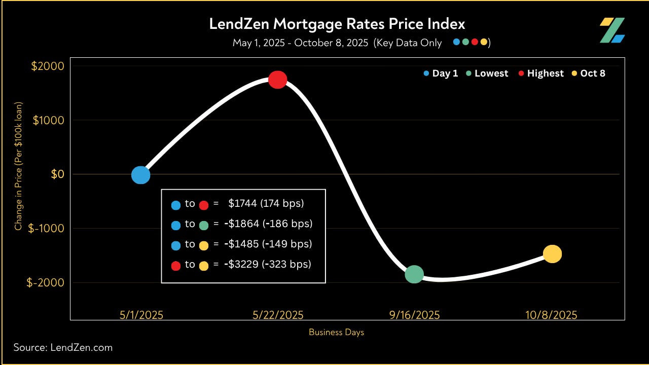 Since starting the index on May 1, 2025, mortgage rates are now 149 bps less expensive.