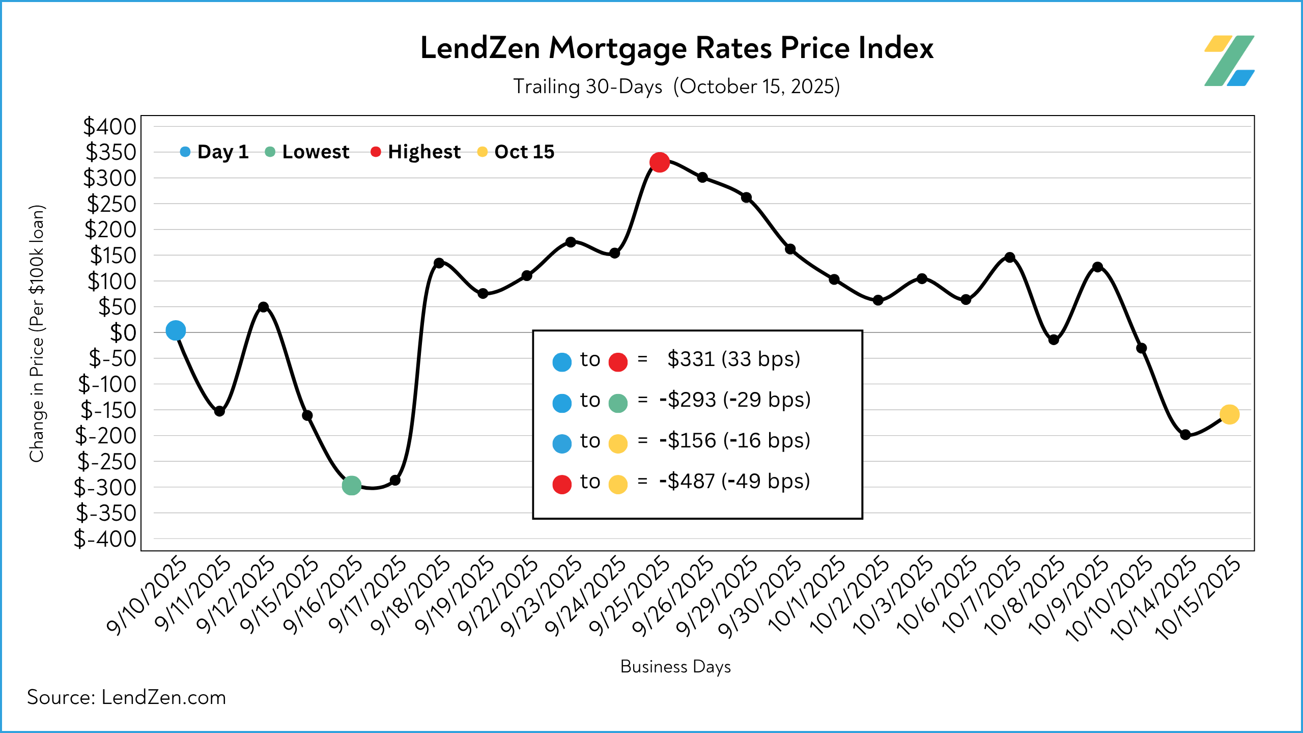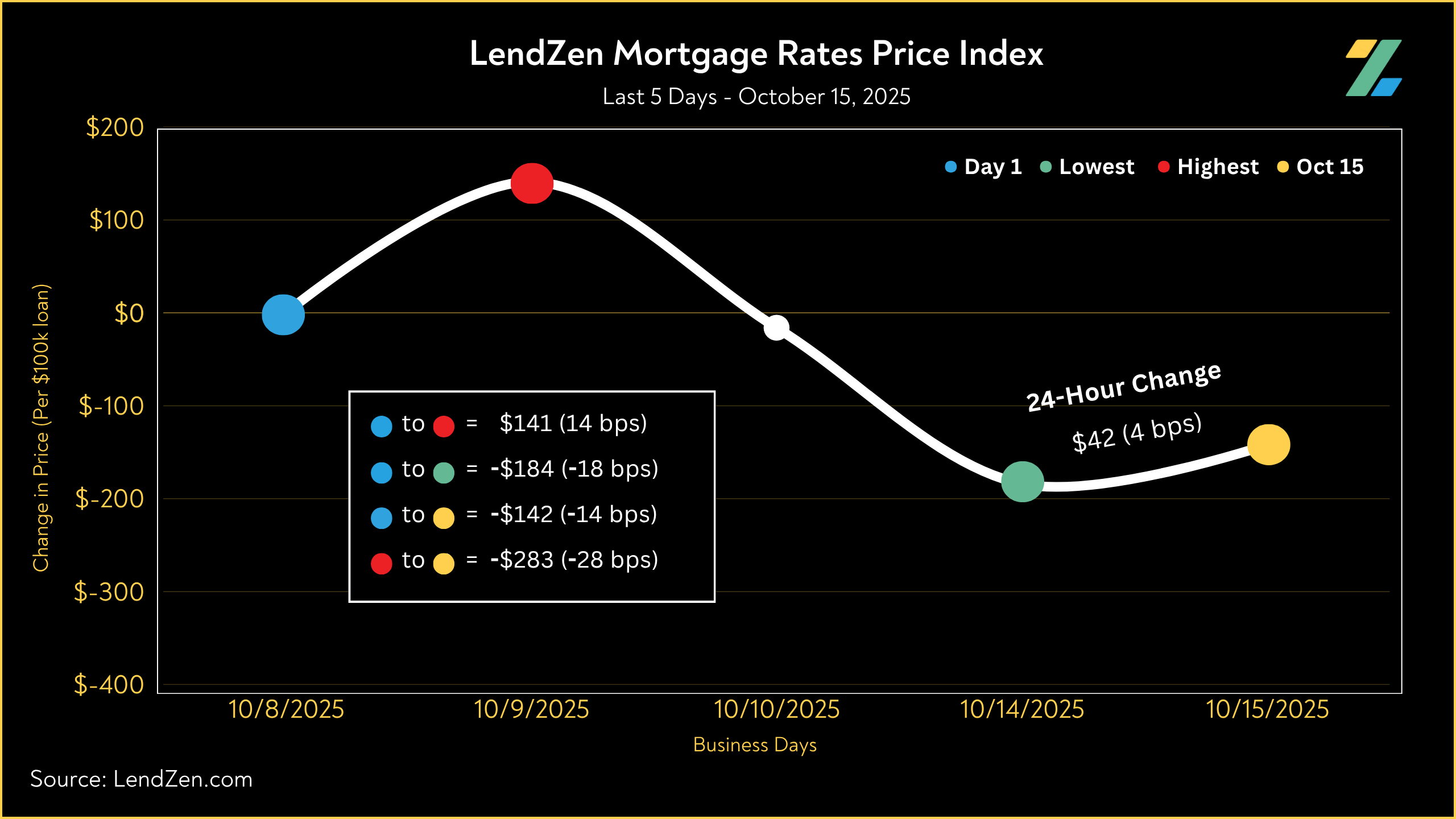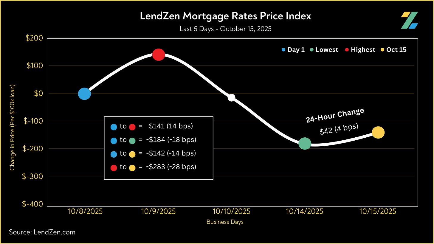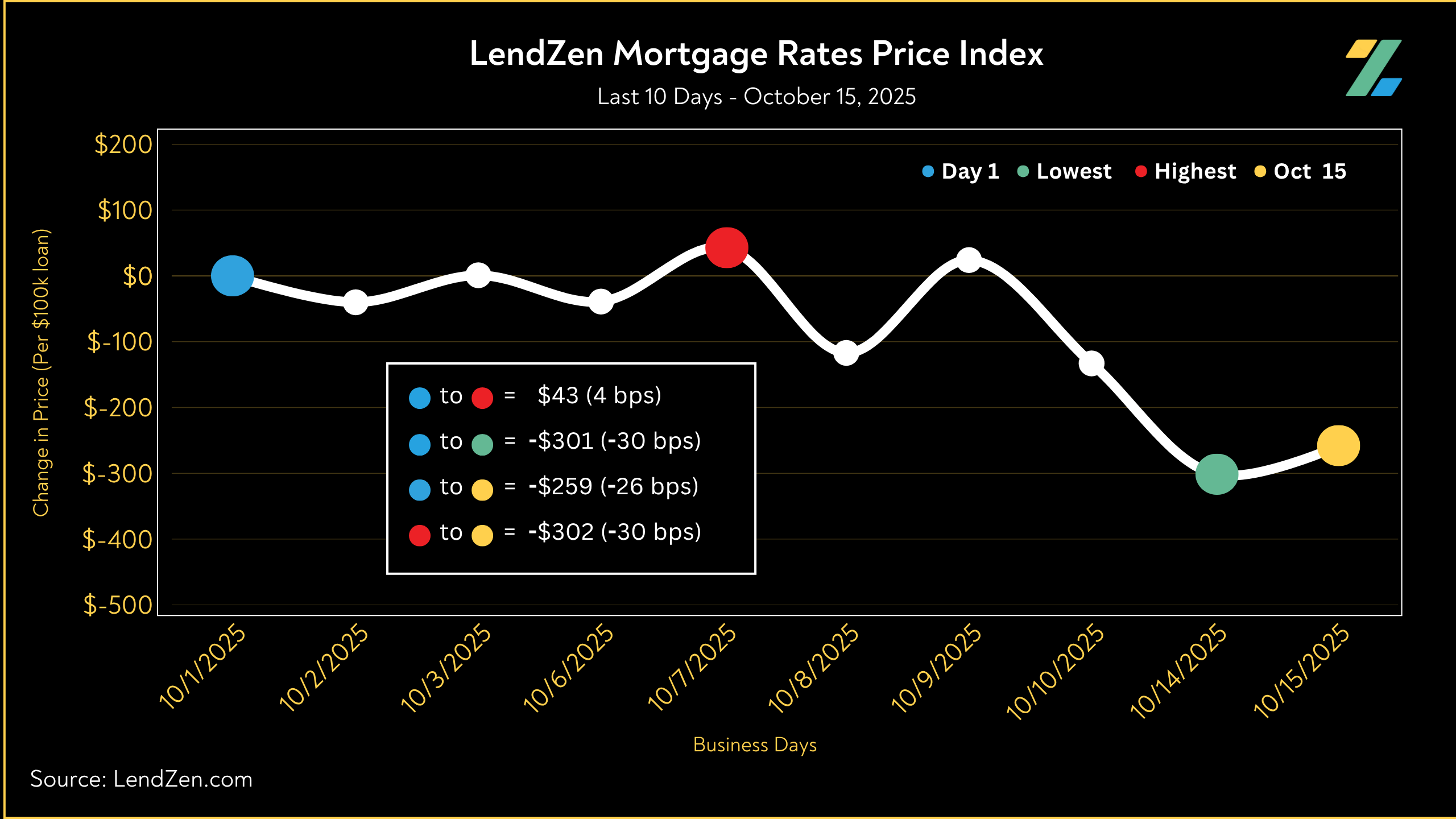 Since October 1, the price of mortgage rates decreased 26 basis points, as seen in the 10-Day chart below.