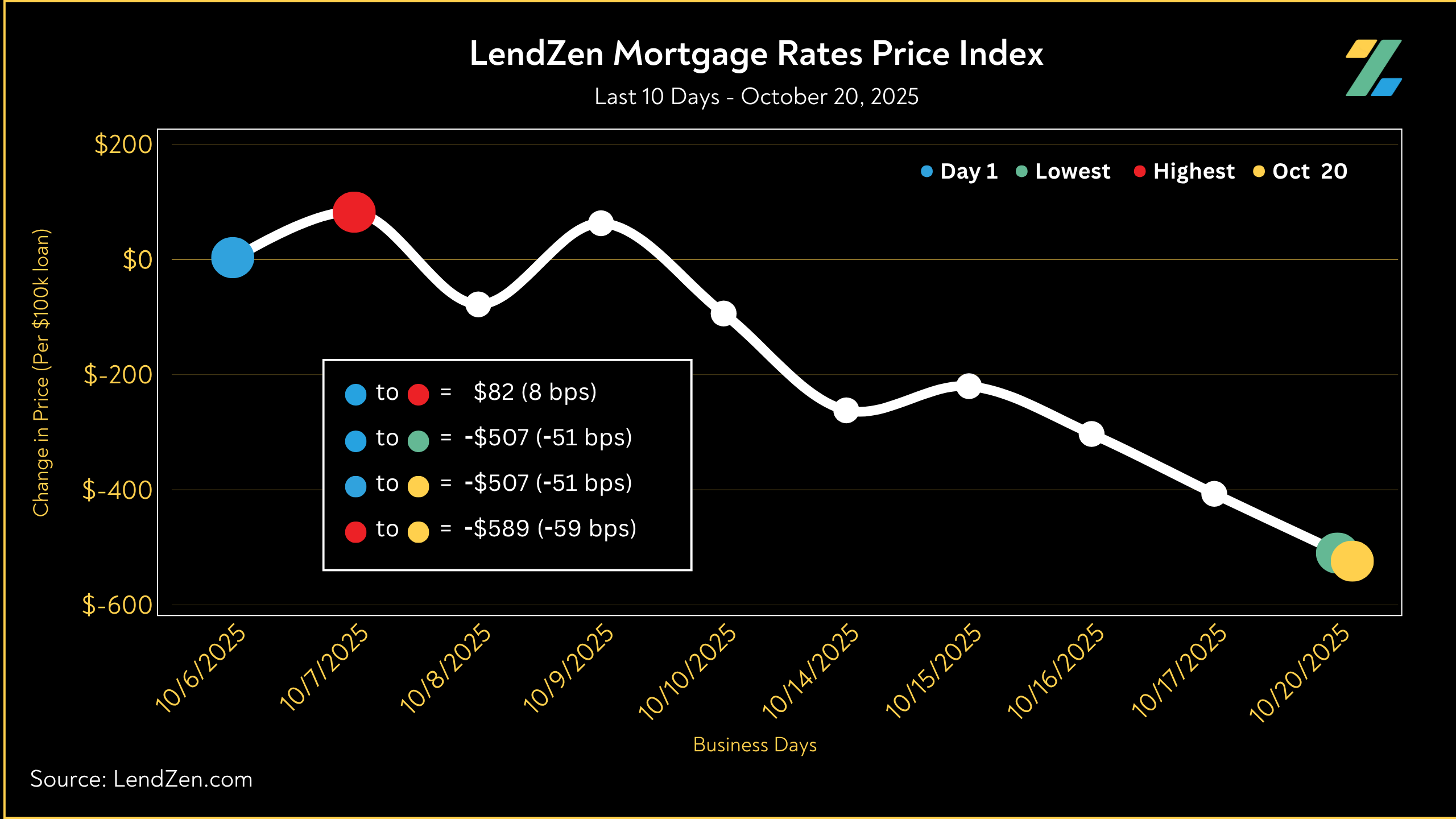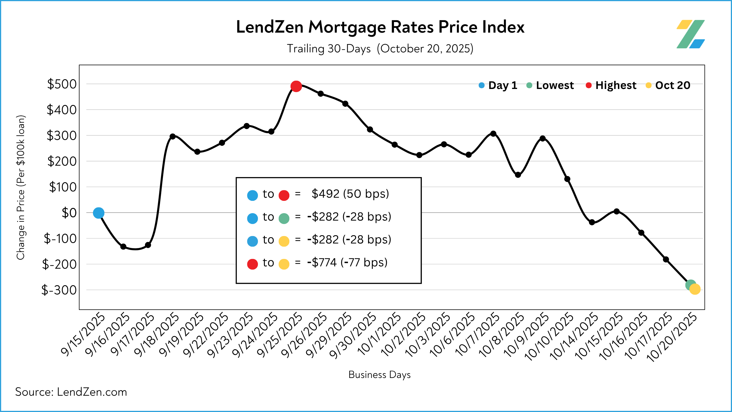 The LendZen Index tracks the price of mortgage rates across a spectrum of mortgage-backed securities.