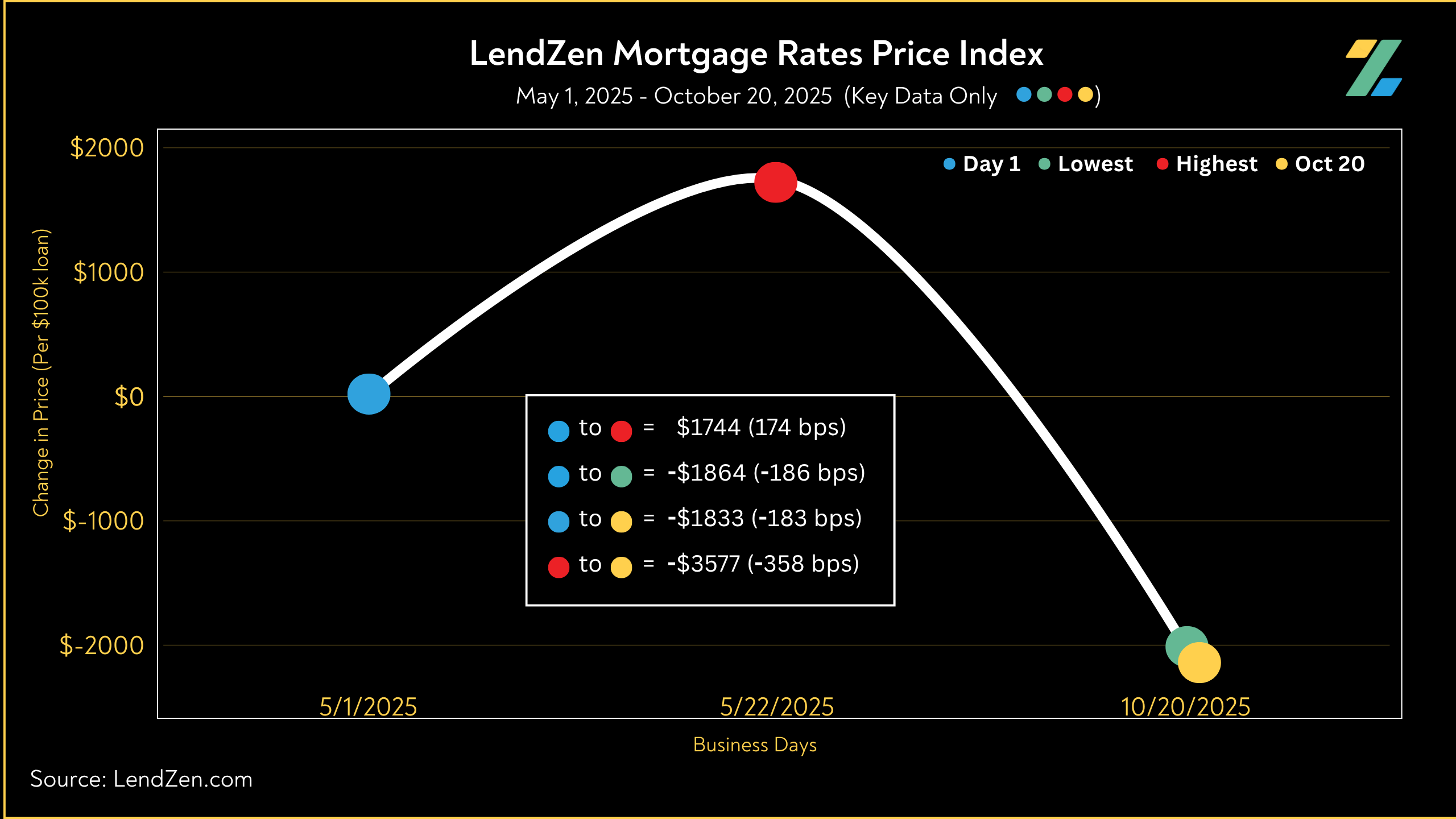 Meanwhile, the LendZen Index tracks the price of each mortgage rate across a spectrum of publicly traded MBS.