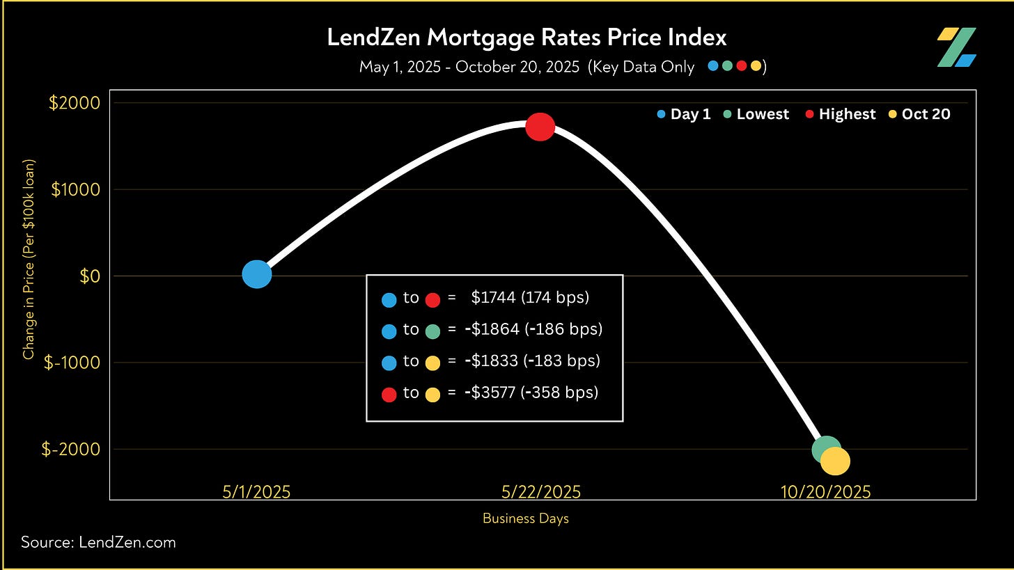 Since starting the index on May 1, 2025, mortgage rates are now 201 bps less expensive.