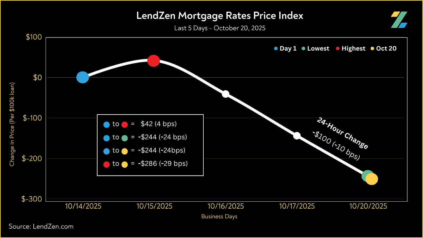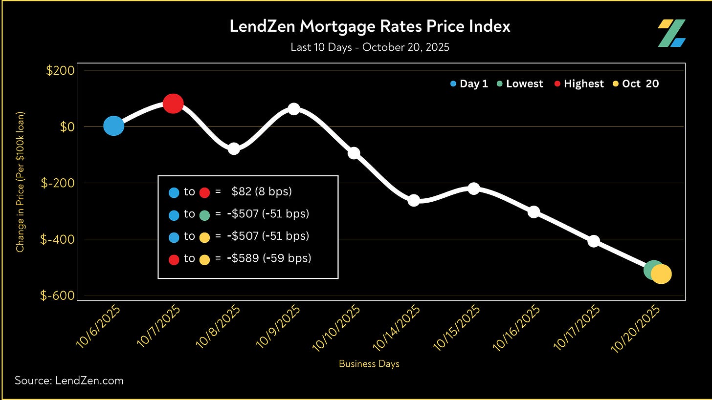 Since October 6, the price of mortgage rates decreased 51 basis points, as seen in the 10-Day chart below.