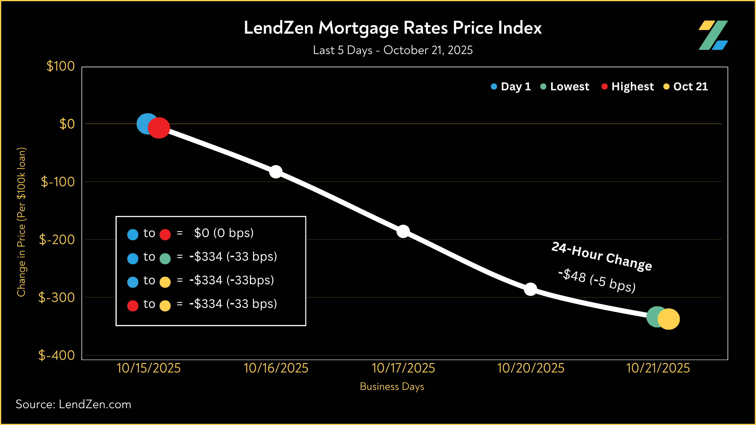 The LendZen Index tracks the price of mortgage rates across a spectrum of mortgage-backed securities.