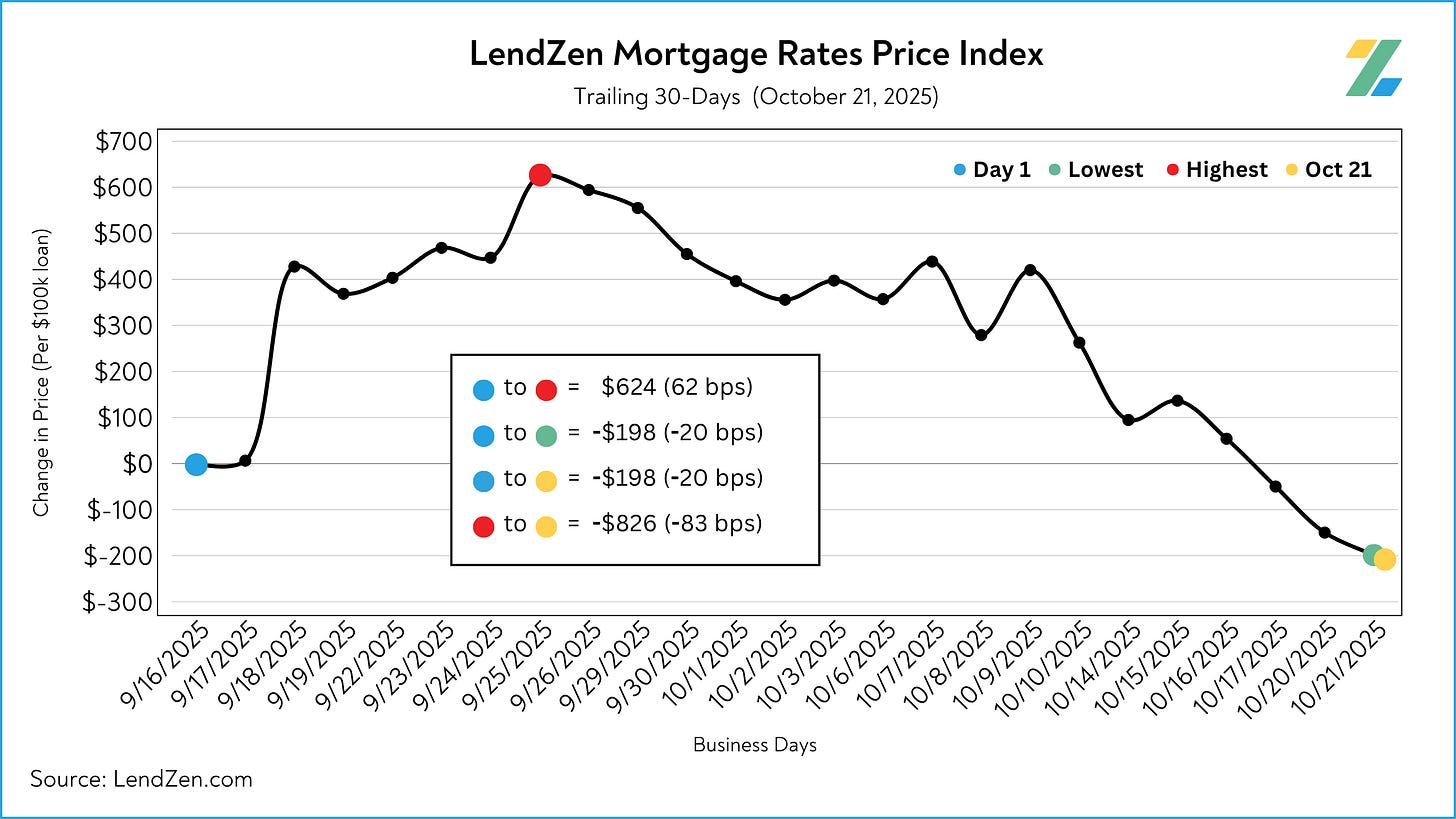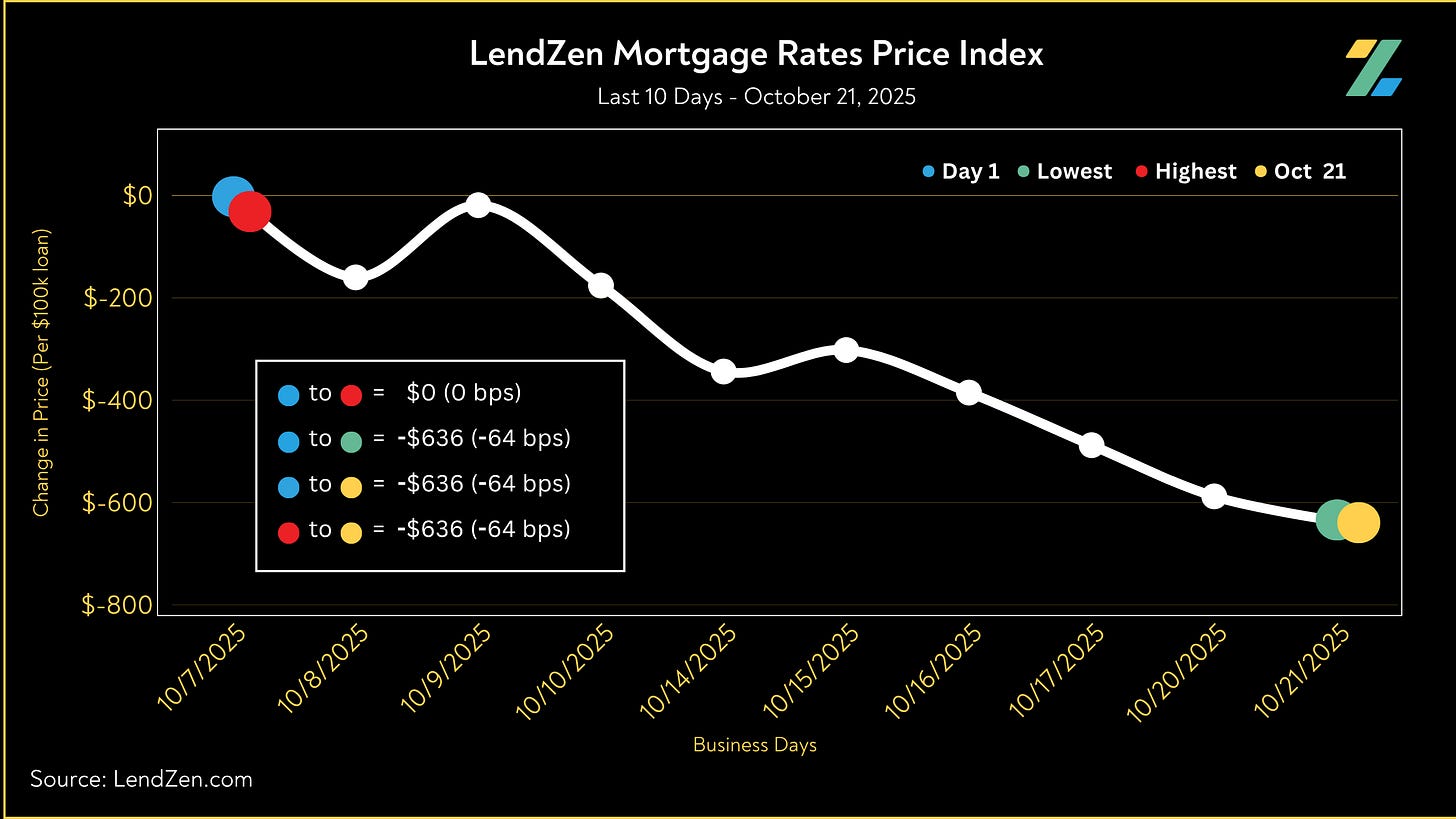 Since October 7, the price of mortgage rates decreased 64 basis points, as seen in the 10-Day chart below.