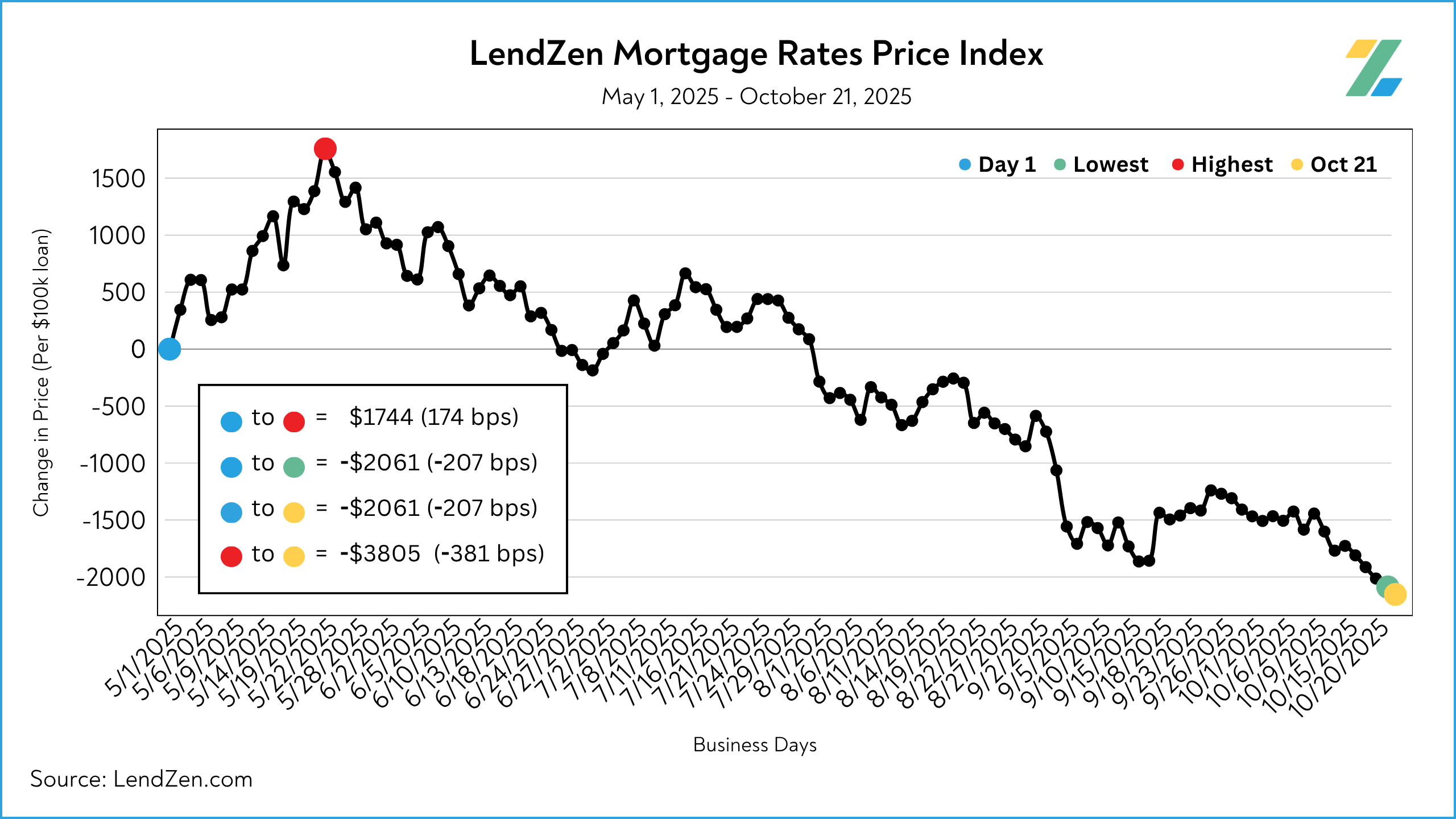 Since starting the index on May 1, 2025, mortgage rates are now 207 bps less expensive.
