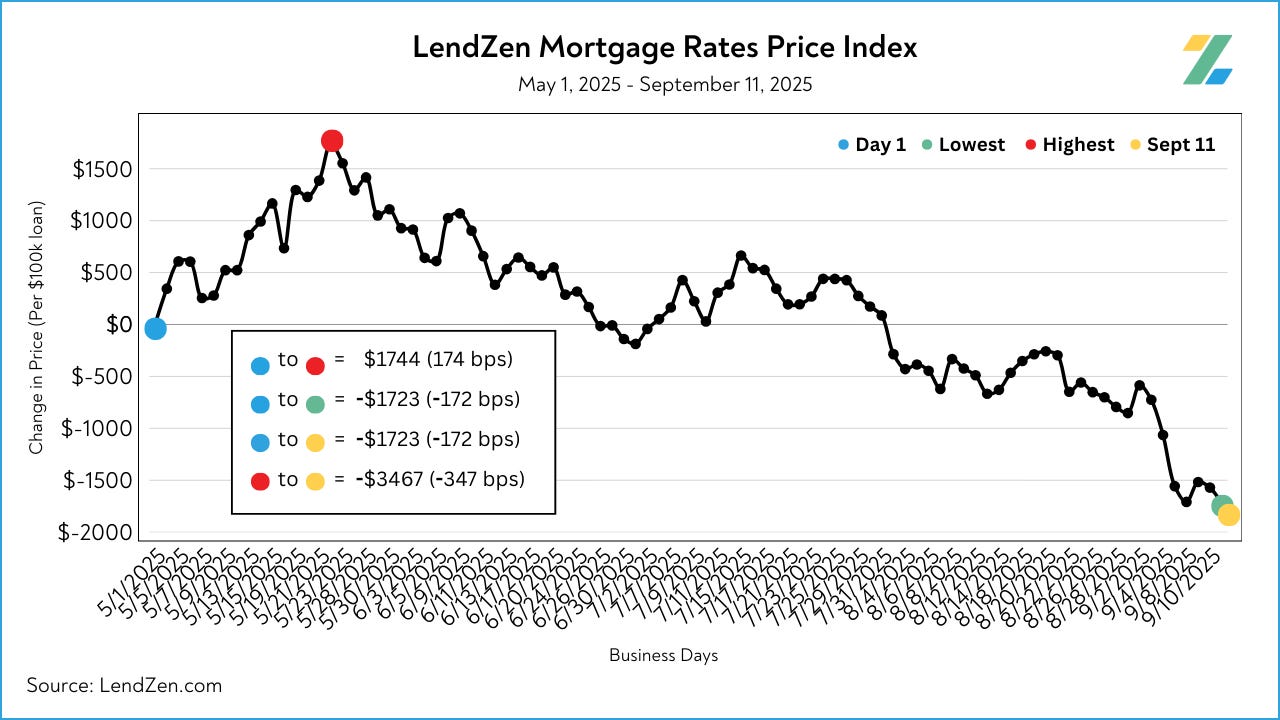 Since starting the index on May 1, 2025, mortgage rates are now 172 bps less expensive.
