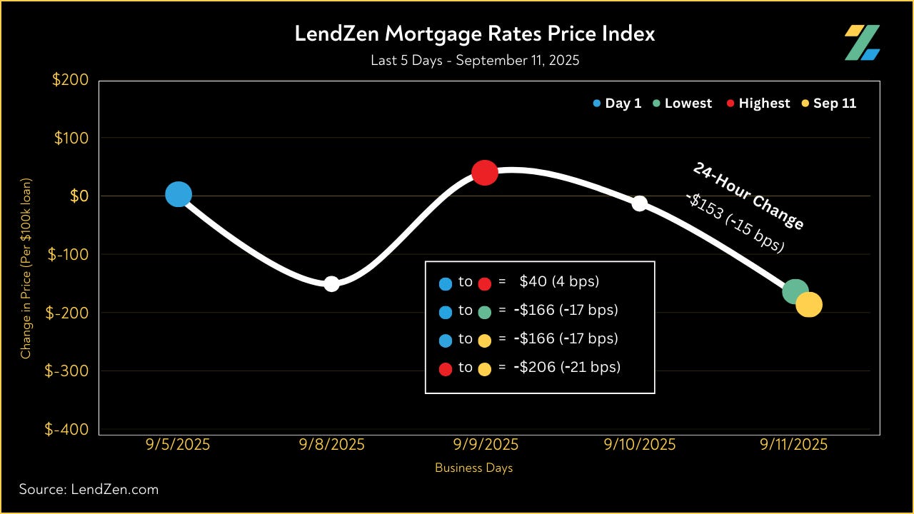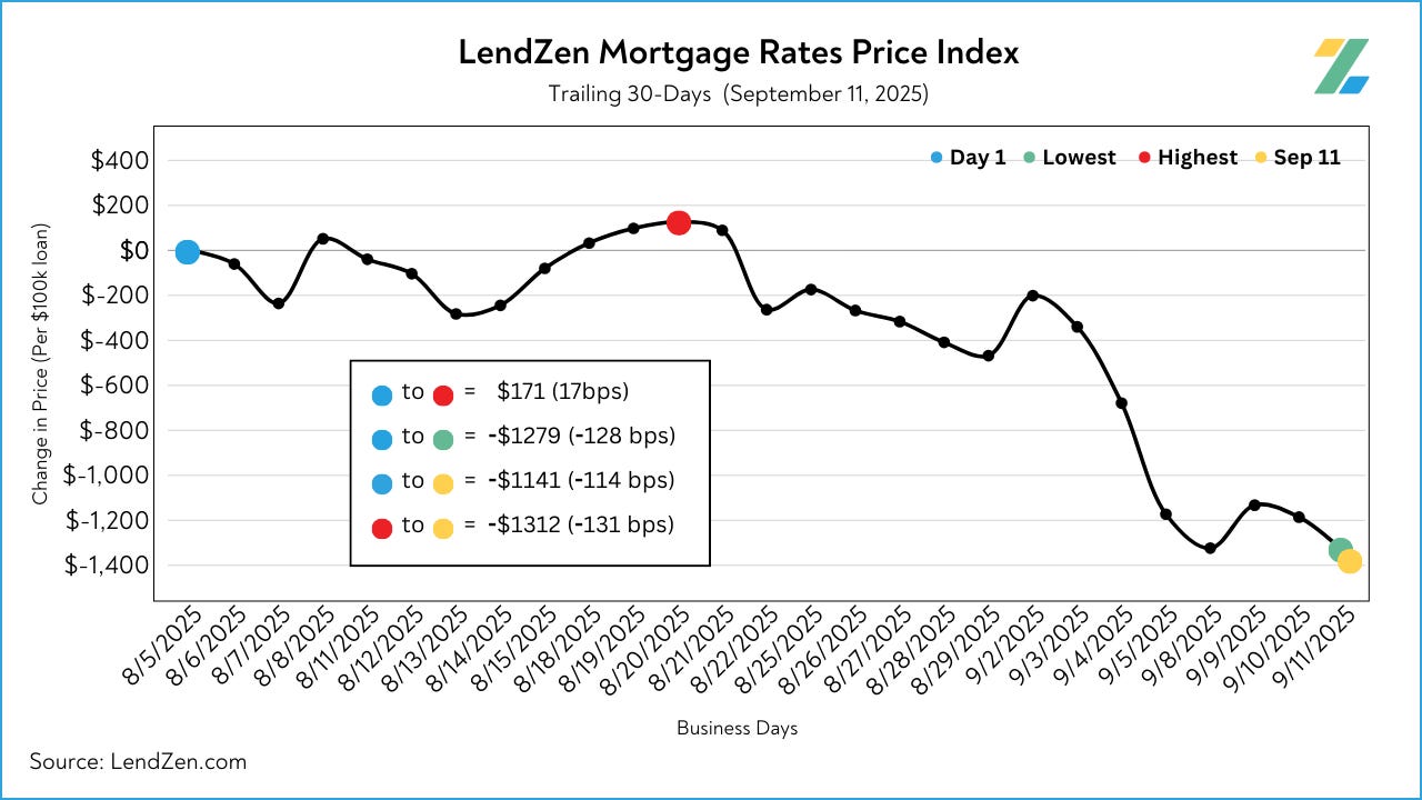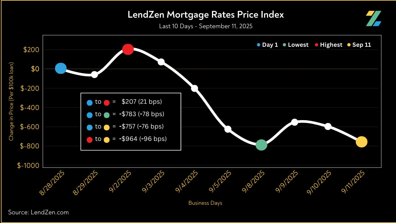 Since August 28, the price of mortgage rates decreased 76 basis points, as seen in the 10-Day chart below.