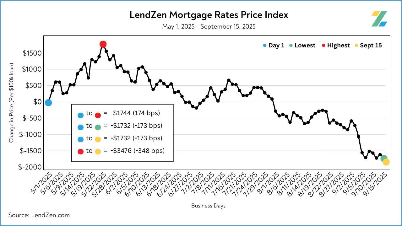 Since starting the index on May 1, 2025, mortgage rates are now 173 bps less expensive.