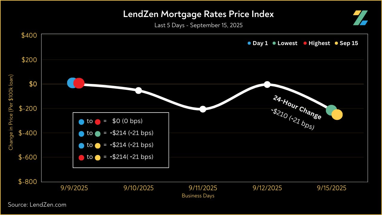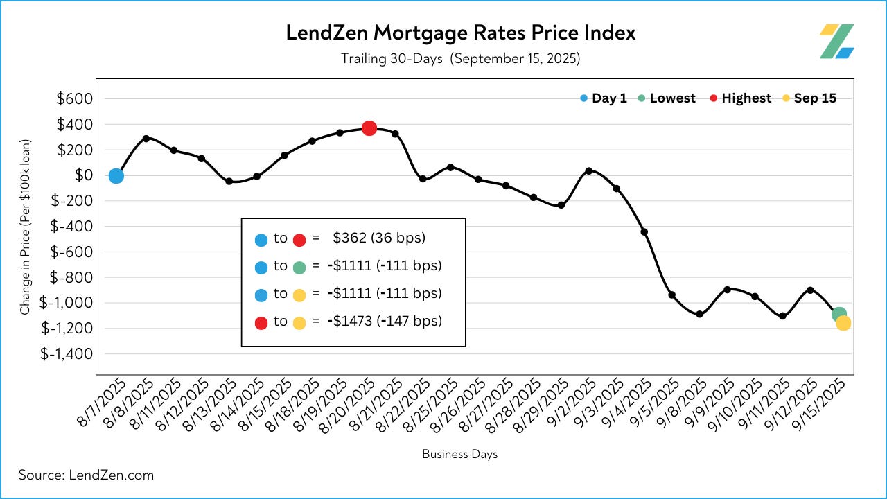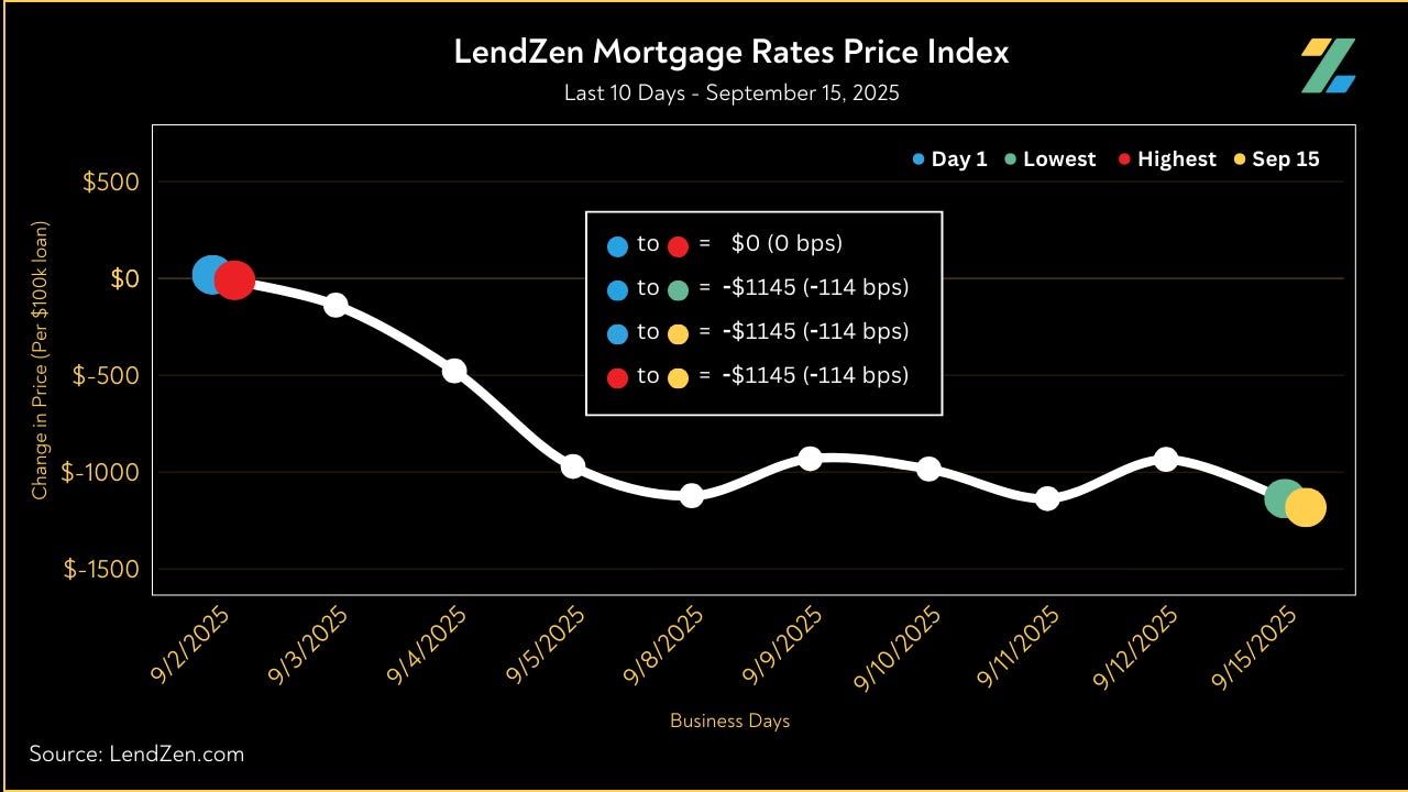 Since September 2, the price of mortgage rates decreased 114 basis points, as seen in the 10-Day chart below.