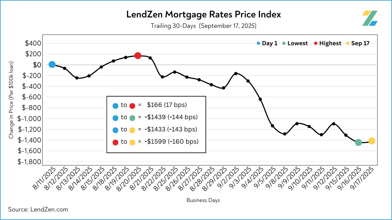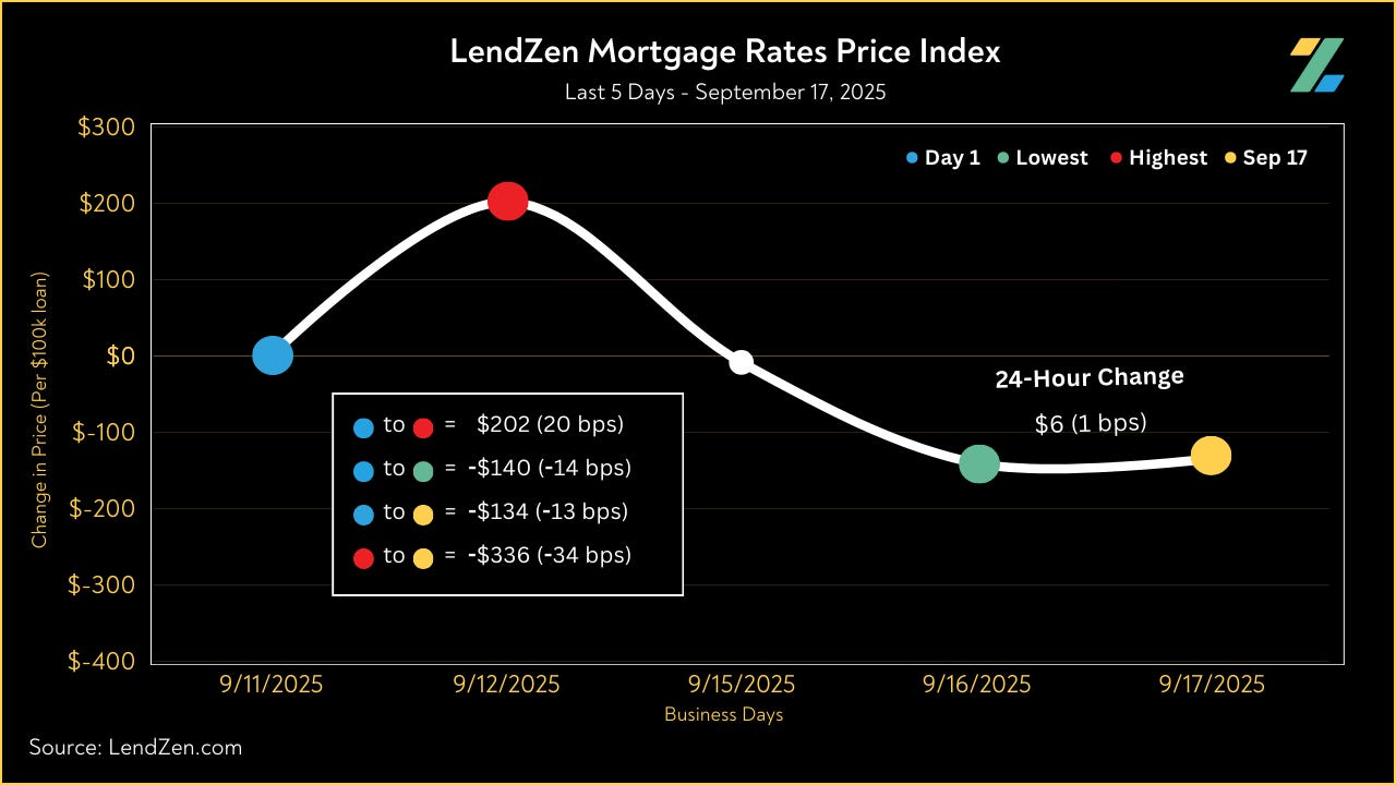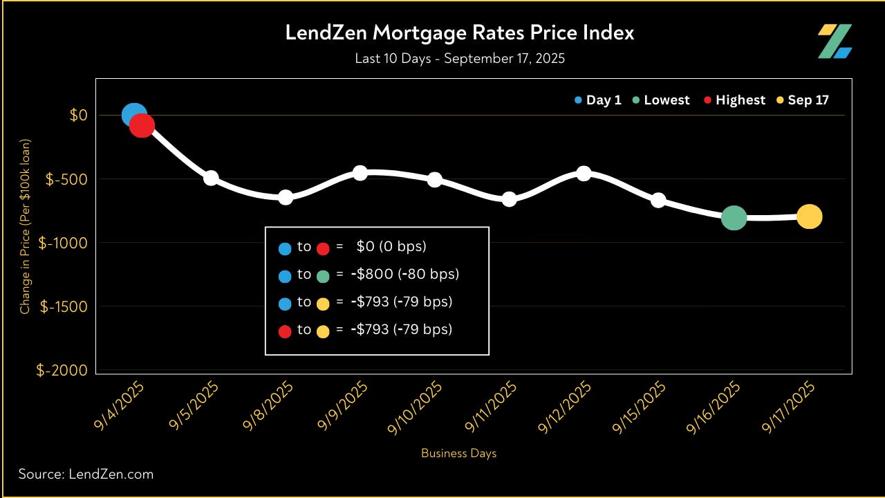Since September 4, the price of mortgage rates decreased 79 basis points, as seen in the 10-Day chart below.