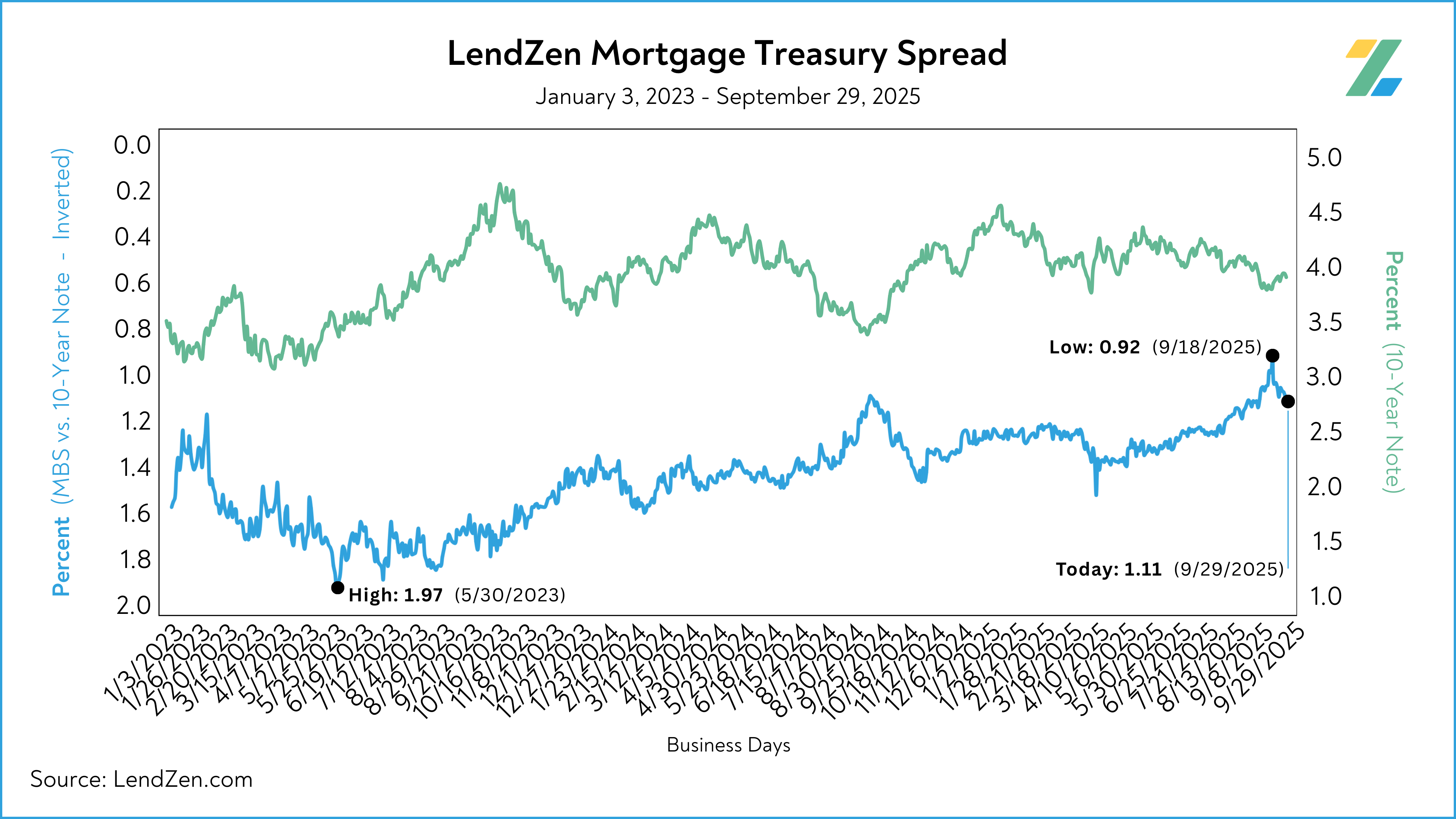 The LendZen Mortgage Treasury Spread (LMTS) uses actual bond yields to create a historically consistent, and reliable, data set.