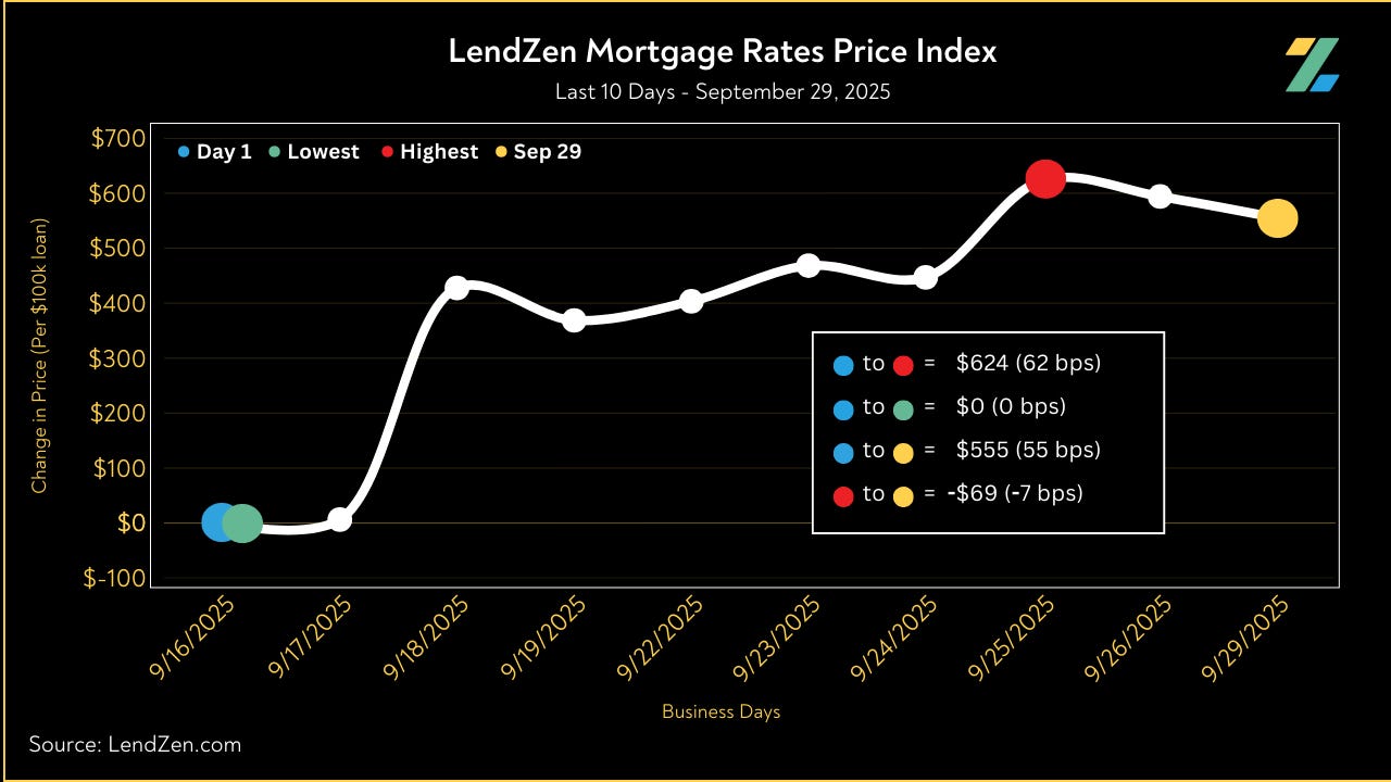 Since September 16, the price of mortgage rates increased 55 basis points, as seen in the 10-Day chart below.