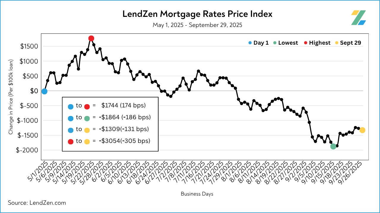 Since starting the index on May 1, 2025, mortgage rates are now 131bps less expensive.