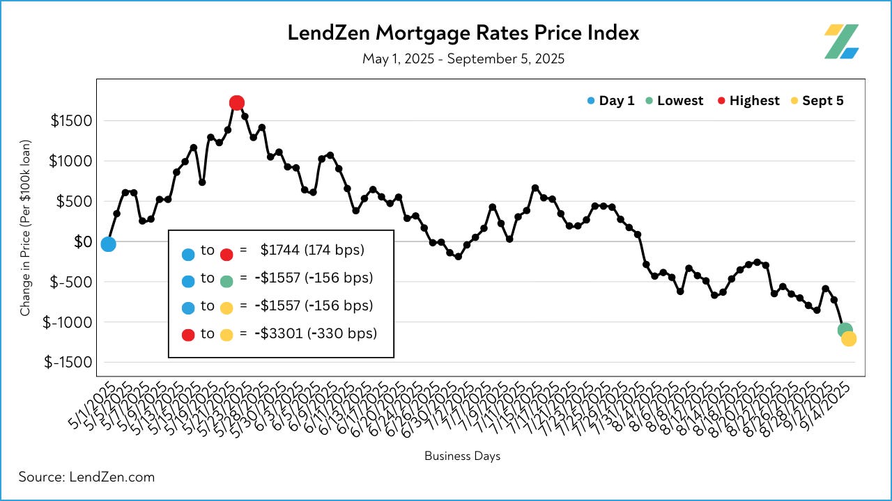 The LendZen Index tracks the price of mortgage rates across a spectrum of mortgage-backed securities.